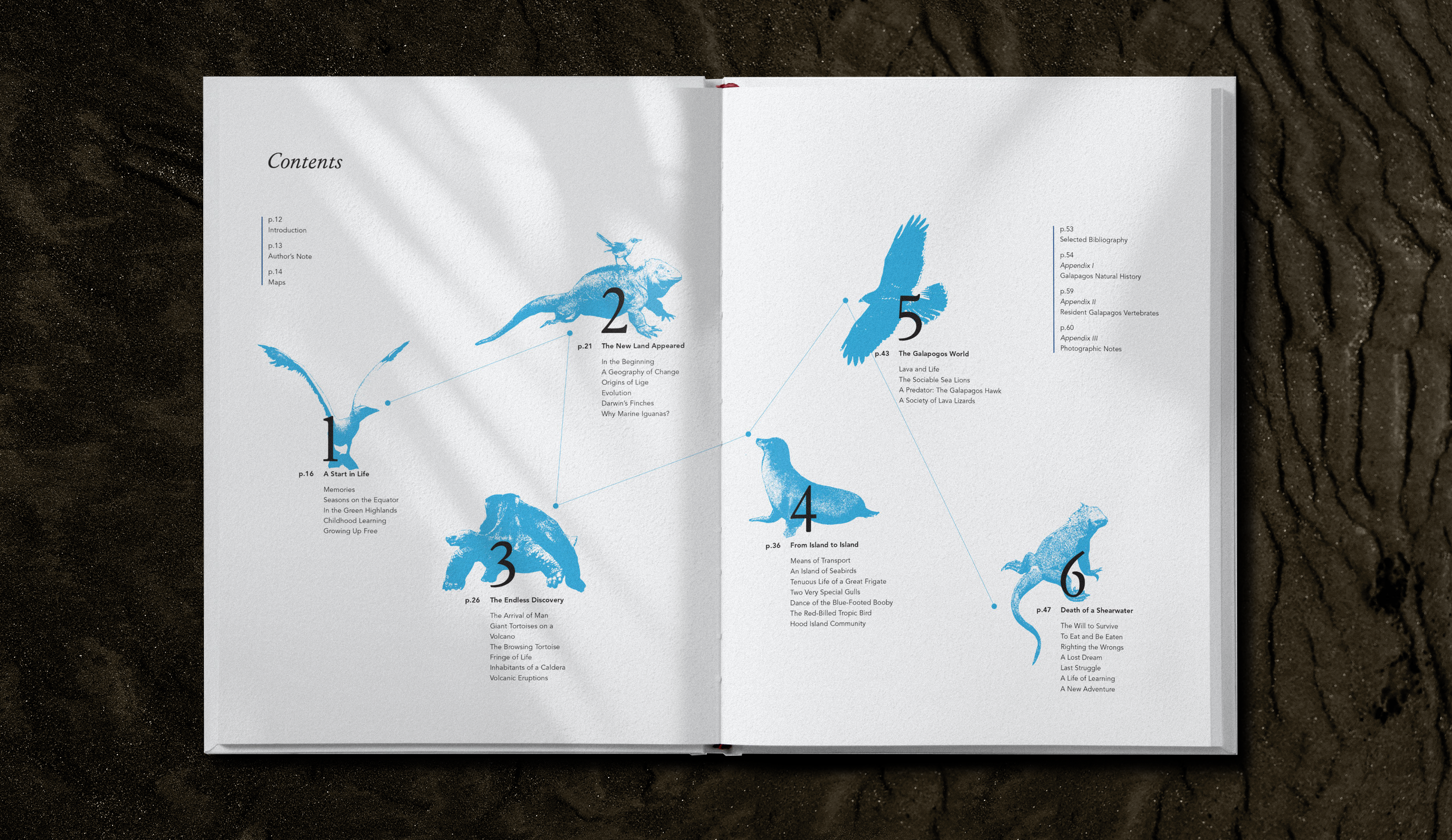 The project—Visual system and layout design for Galapagos, Islands lost in time, a book that explores the natural history of the famous islands.