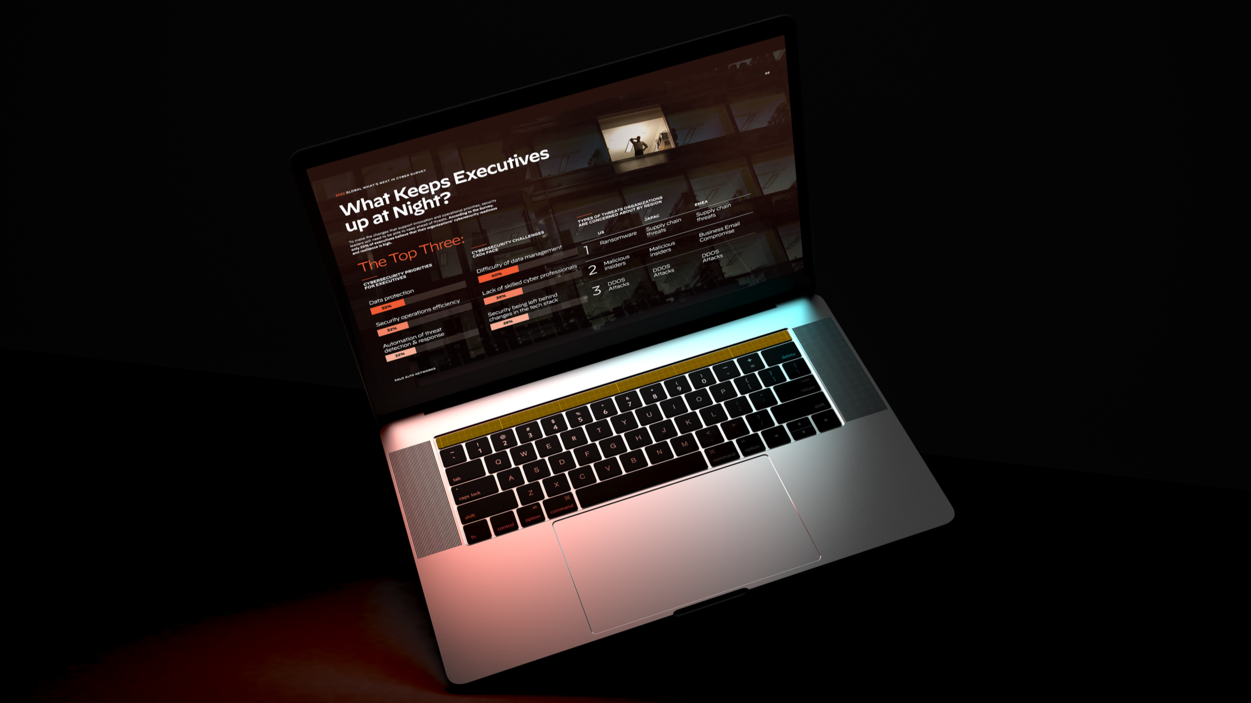 The project—Developing a distinctive look for the first published What’s Next in Cyber report from Palo Alto Networks.